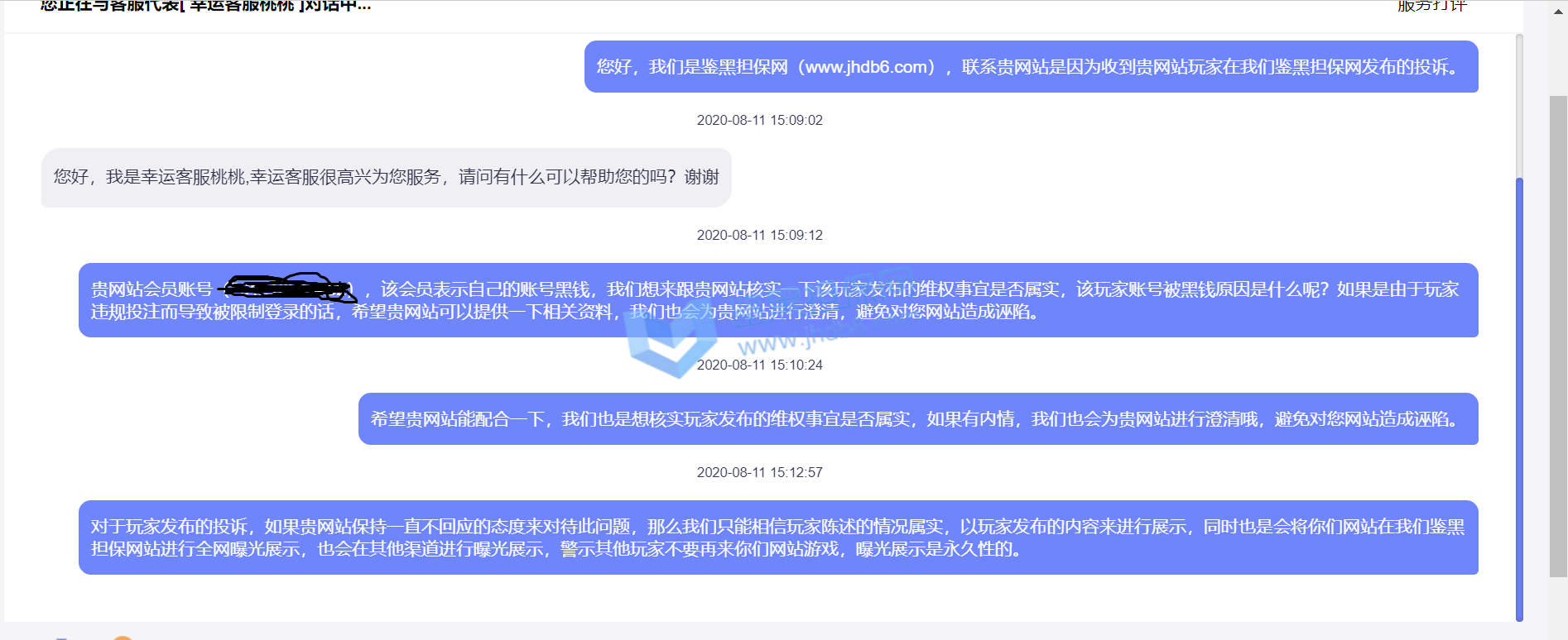 2.已受理的维权无法删除、撤销,鉴黑担保网将对维权事实进行核查验证并公开透明全过程,以保障维权双方的权益;