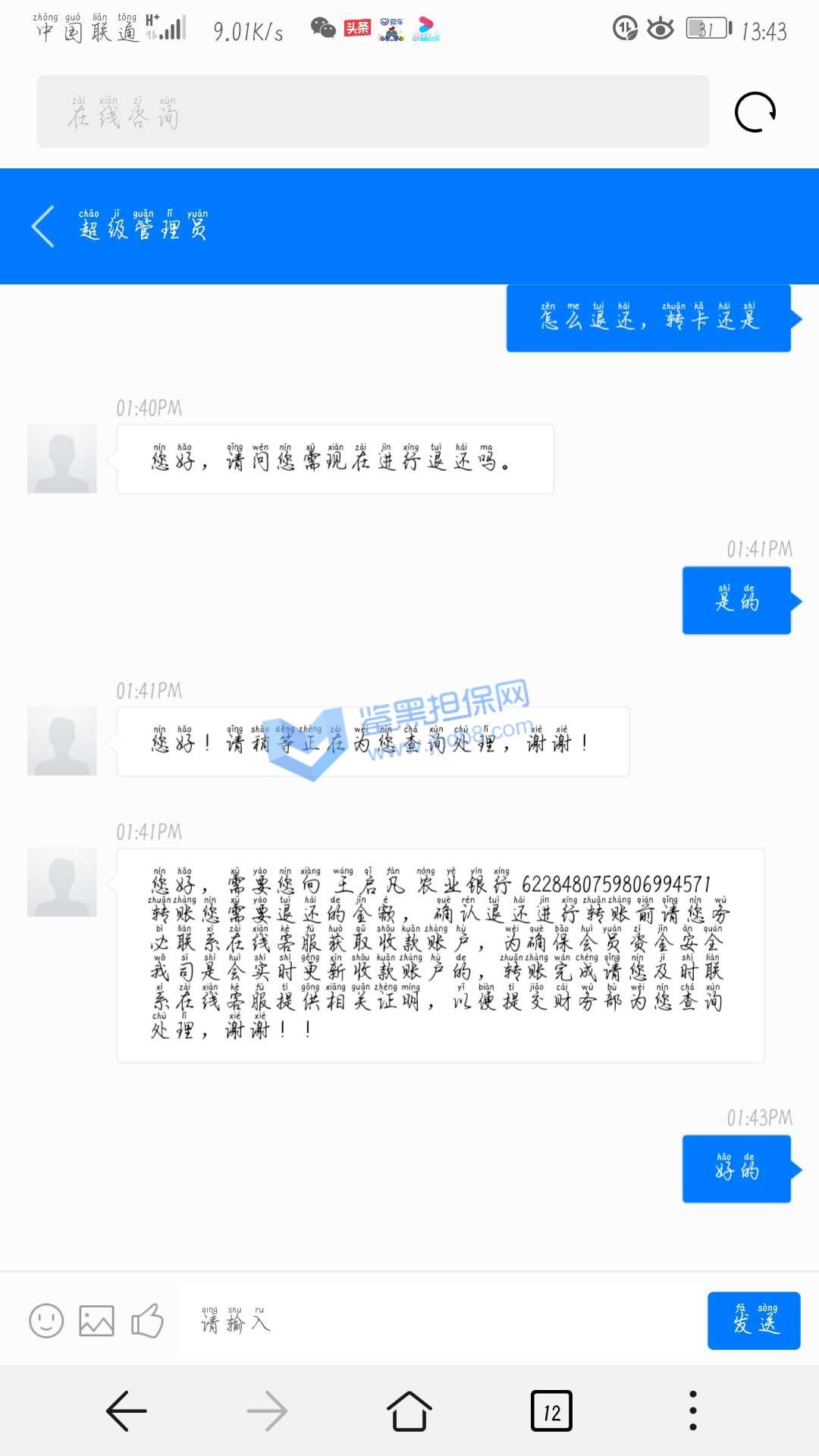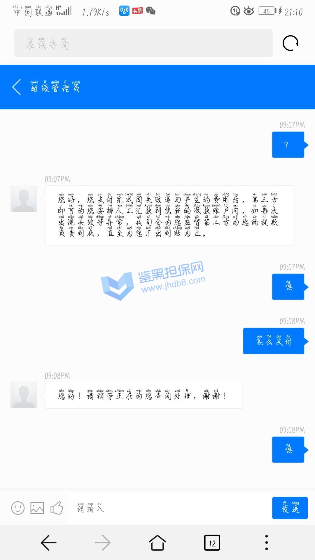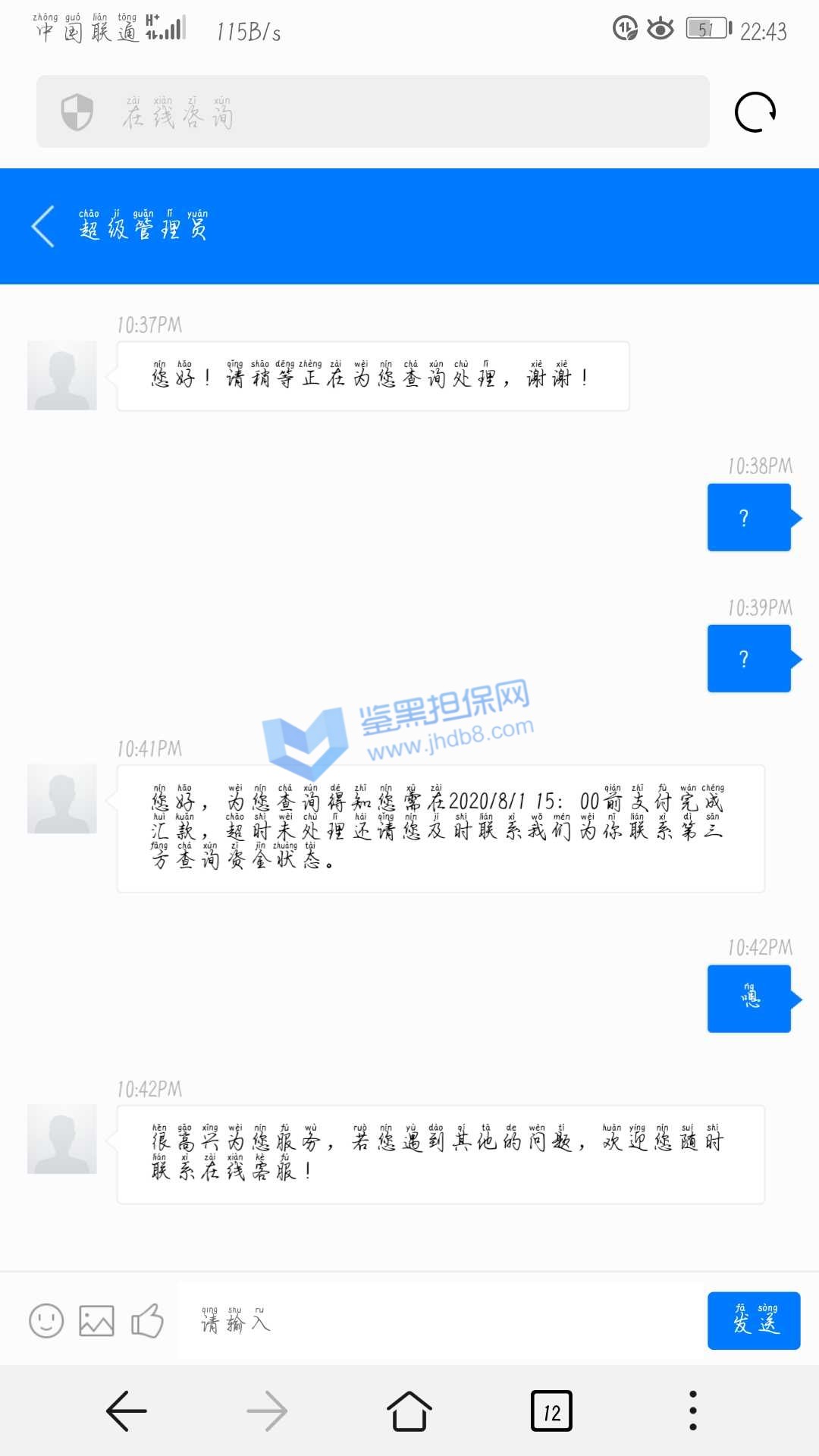 3.用户提交维权申请后资料不齐全,需在一周内补齐鉴黑担保网客服要求的资料,若超过一周时间没有完善维权信息,维权将因资料不全拒绝受理;