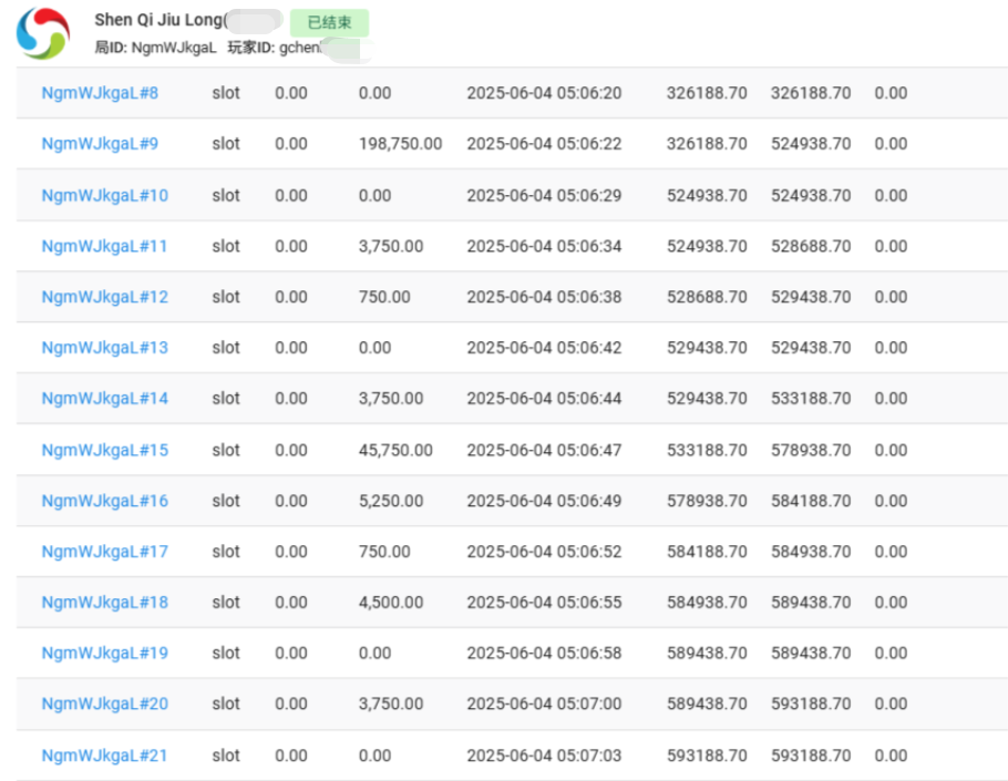 chen****18日刚注册,查阅其投注记录,又是电子大爆,