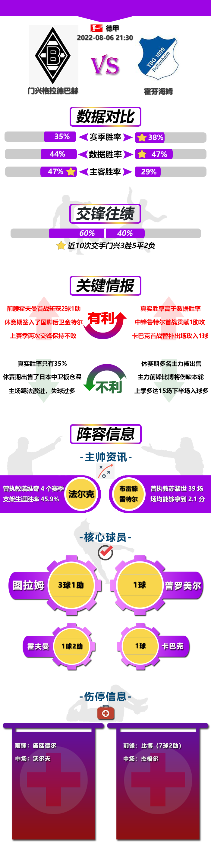 阿甲 01:00 巴拉卡斯中央队 VS 阿根廷青年人 巴拉卡斯中央队目前取得七胜九平七负的成绩,排名联赛14的位置,表现一般,当然主场方面的稳定性还算是比较高的,目前主场方面取得5胜4平3负的成绩,起码防守效率很高,场均失守不到一球。他们近期状态也是不错的,连续四场比赛不败打出,包括近期处于两连胜走势当中,都是打进两球的进攻表现,相当出色。阿根廷青年人则是取得九胜六平八负的成绩,领先着对手3个积分,球队的客场表现不算是太好,只有三胜三平六负的成绩,而且近期连续三场比赛不胜,包括最近两轮比赛都是被零封的局面,进攻比较乏力。就当前的数据来看,还是能够给予阿根廷青年人更大的支持,而数据走势也是对于阿根廷青年人利好,所以我认为阿根廷青年人不败很有机会。 分析双方数据: 巴拉卡斯中央队 【有利】 1、本赛季至今为止在联赛主场拿到了5场胜利,发挥明显优于客场; 2、状态:上场作客2-0击败了贝尔格拉诺,最近4场赛事取得了2胜2平的战绩; 3、数据走势:最近3场赛事全部赢下数据,赢数据能力明显提升; 4、数据历史:最近5次与本场相同初始数据的赛事最终拿到了4胜1负的佳绩,在此数据之下发挥出色; 5、火力点:本赛季至今已经有10名球员取得过联赛进球,进攻火力点分布比较广。 【不利】 1、前锋:本赛季至今为止在联赛中进球最多的球员只打进5球,进攻端明显欠缺1个强点。 阿根廷青年人 【有利】 1、防守:本赛季至今12次作客赛事之丢失9球,场均远不足1球; 2、往绩:双方近些年的一次交手中,阿根廷青年人客场3-1击败了巴拉卡斯中央队。 【不利】 1、状态:上场主场0-0战平了科尔多瓦,最近3场赛事只有1平2负的战绩; 2、数据走势:最近3场赛事全部都输掉了数据,赢数据能力不佳; 3、进攻:最近2场赛事全部遭遇到对手的零封,进攻效率有所下滑; 4、数据历史:最近4次