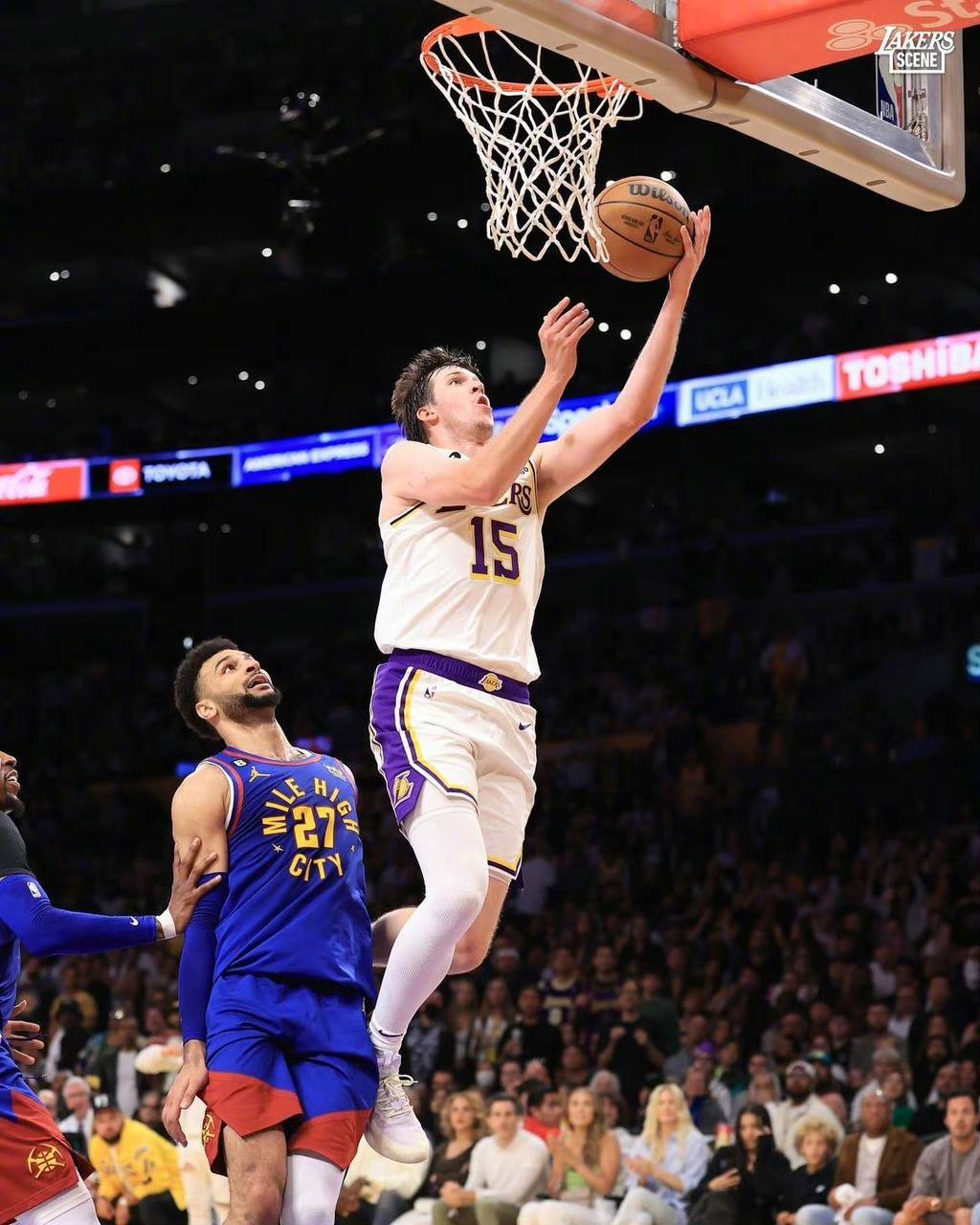 虽然掘金三分也只有27中8,但他们在禁区建立了巨大优势:他们在禁区得到48分,篮下20中16,同时中距离神准31中15。约基奇全场砍下27分10板14助,率领掘金在家门口拿下开门红。